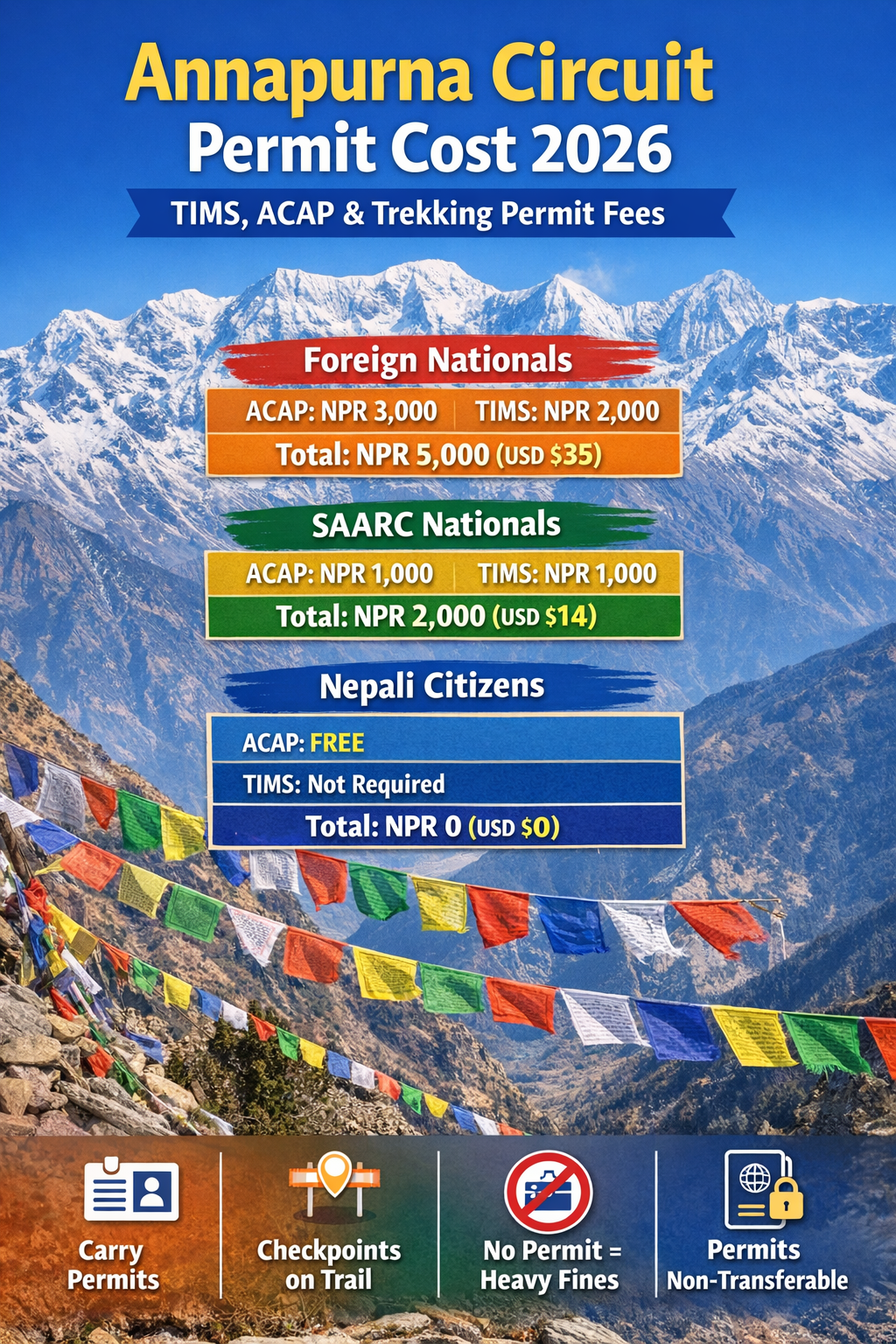 Are you going to trek the legendary Annapurna Circuit in 2026? It is very important that one understands how much a trekking permit costs for proper budgeting and also for legal compliance during a Himalayan adventure. Unlike in unrestricted trekking areas, multiple permits are required to protect the fragile mountain environment, preserve local culture, and support conservation efforts in one of Nepal's most spectacular trekking areas.