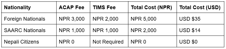 Individual Trekker: NPR 1,000 or approximately USD $7