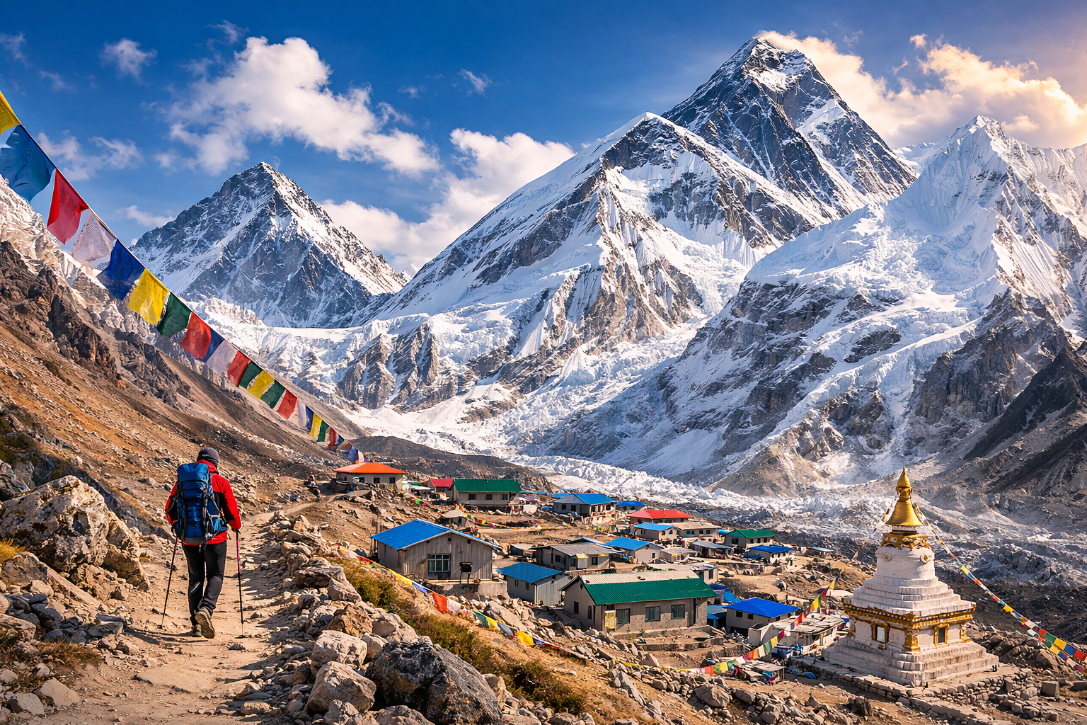 You are not just in a village anymore. You are at the doorstep of the highest mountain on Earth, and even the air seems to know it.