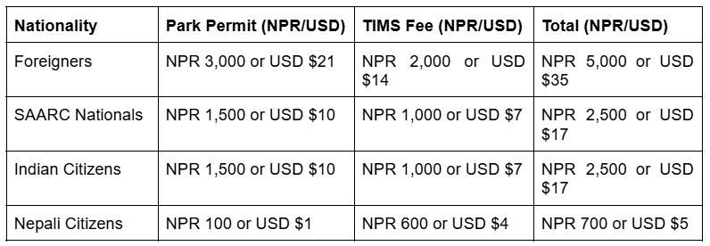 - Individual Trekker (FIT): NPR 2,000 or approximately USD $14
