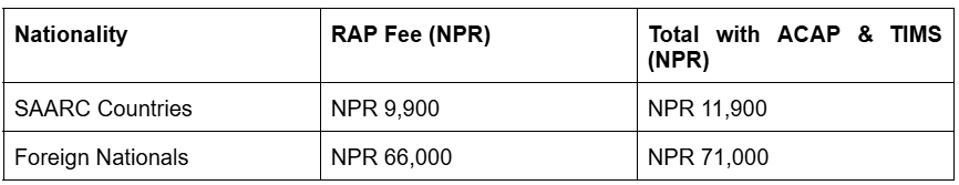 - Trekkers' Information Management System Card: NPR 1,000